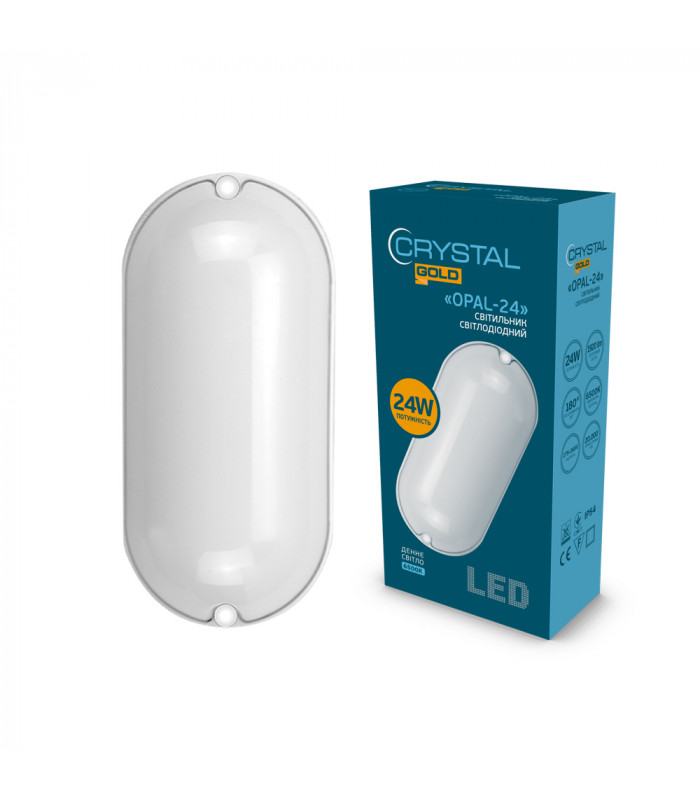 Светильник CRYSTAL GOLD Opal 24Вт 6500K - современное решение для освещения промышленно-складских и производственных помещений. Благодаря овальной форме и белому корпусу из полипропилена светильник легко интегрируется в любой интерьер, обеспечивая яркий и равномерный свет.