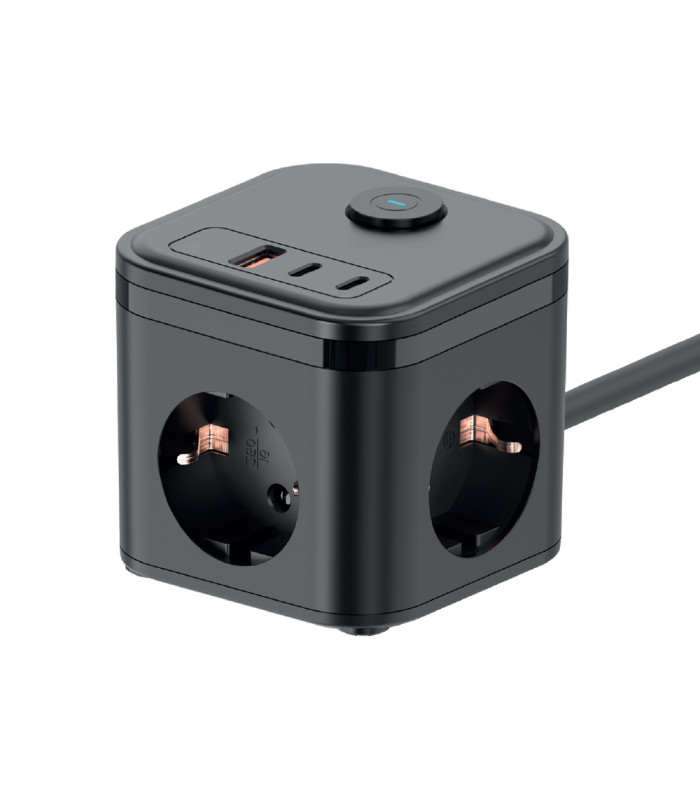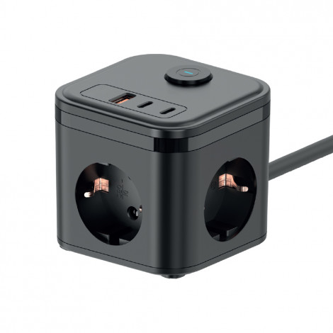 Подовжувач оснащений трьома стандартними розетками, що дозволяє одночасно підключати побутові та офісні прилади. Два порти USB Type-C з підтримкою швидкої зарядки Power Delivery (20W) та додатковий USB Type-A забезпечують ефективне заряджання смартфонів, планшетів, навушників та інших гаджетів без потреби в окремих адаптерах.