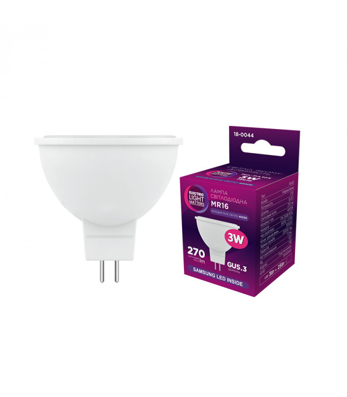 Світлодіодна лампа ELM MR16 3 Вт GU5.3 4000K (18-0044)